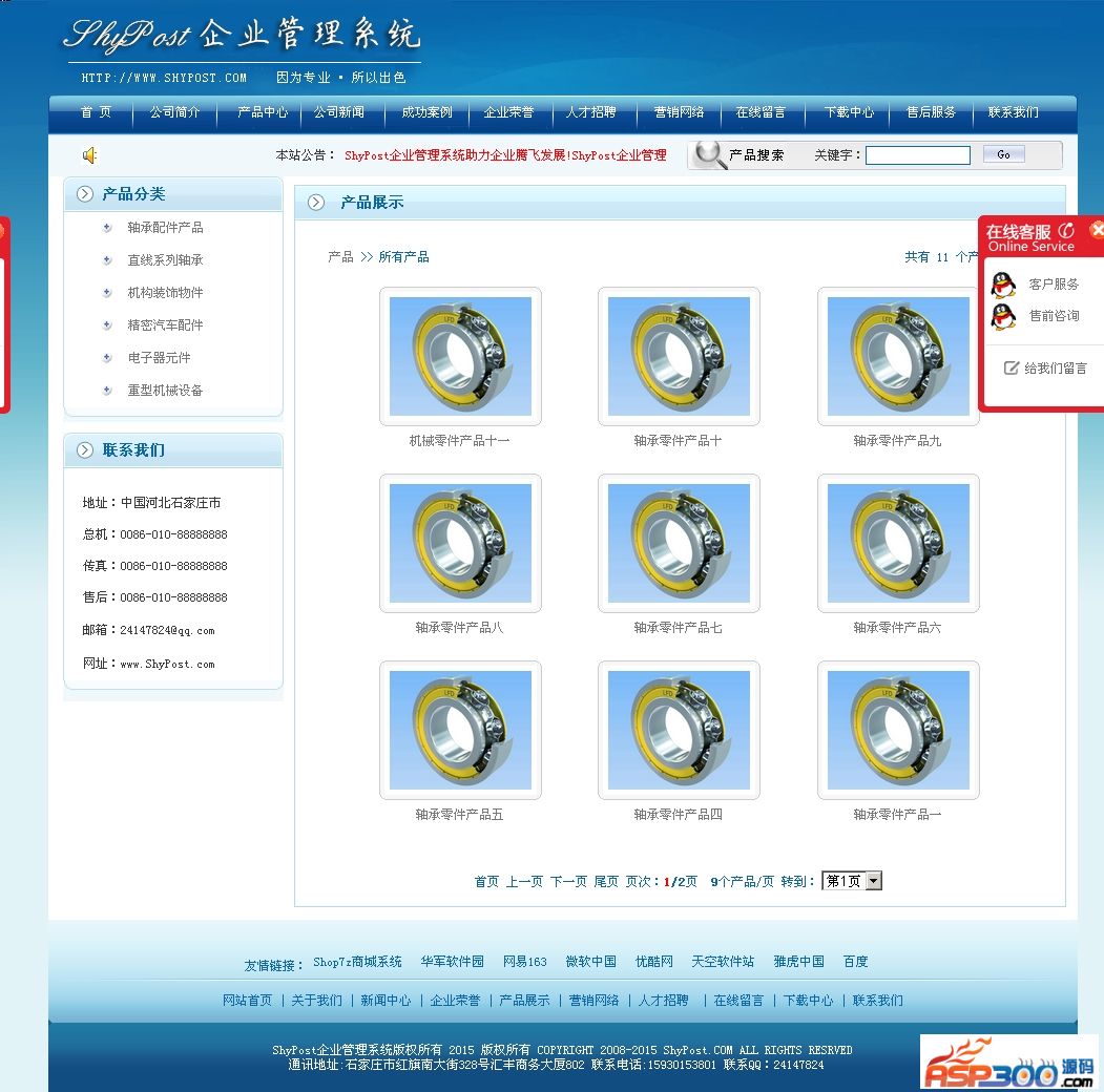 ShyPost拥有一批技术实力强大的开发团队,各模板均精心开发、界面美观时尚、动感十足适合行业使用,如流行的蓝色基调彰显科技以人为本的宗旨,时刻给人以无限的美感!古典的深红色则适合家具、装饰行业等等众多模板。软件具有强大的前台展示和后台管理两部分组成。支持长幅动态广告图片调用。商品滚动展示功能。导航栏目内容划分清晰明了,包括公司简介、产品中心、公司新闻、成功安全、人才招聘、在线留言、下载中心等十几个栏目内容,完全可以满足各类企业的需求。