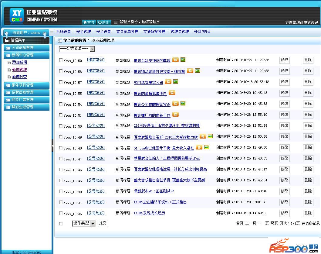 新闻资讯管理:管理新闻信息内容,管理相关分类,添加或者删除
