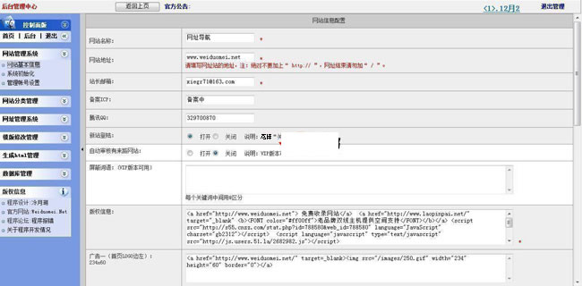 网址铺吧网址导航源码程序系统后台功能 1.设置网站的基本信息。